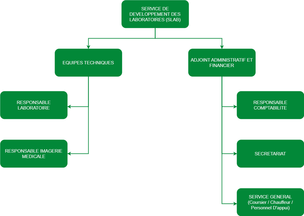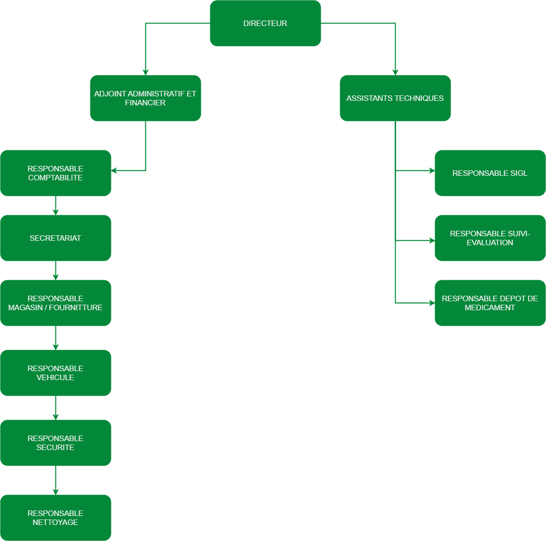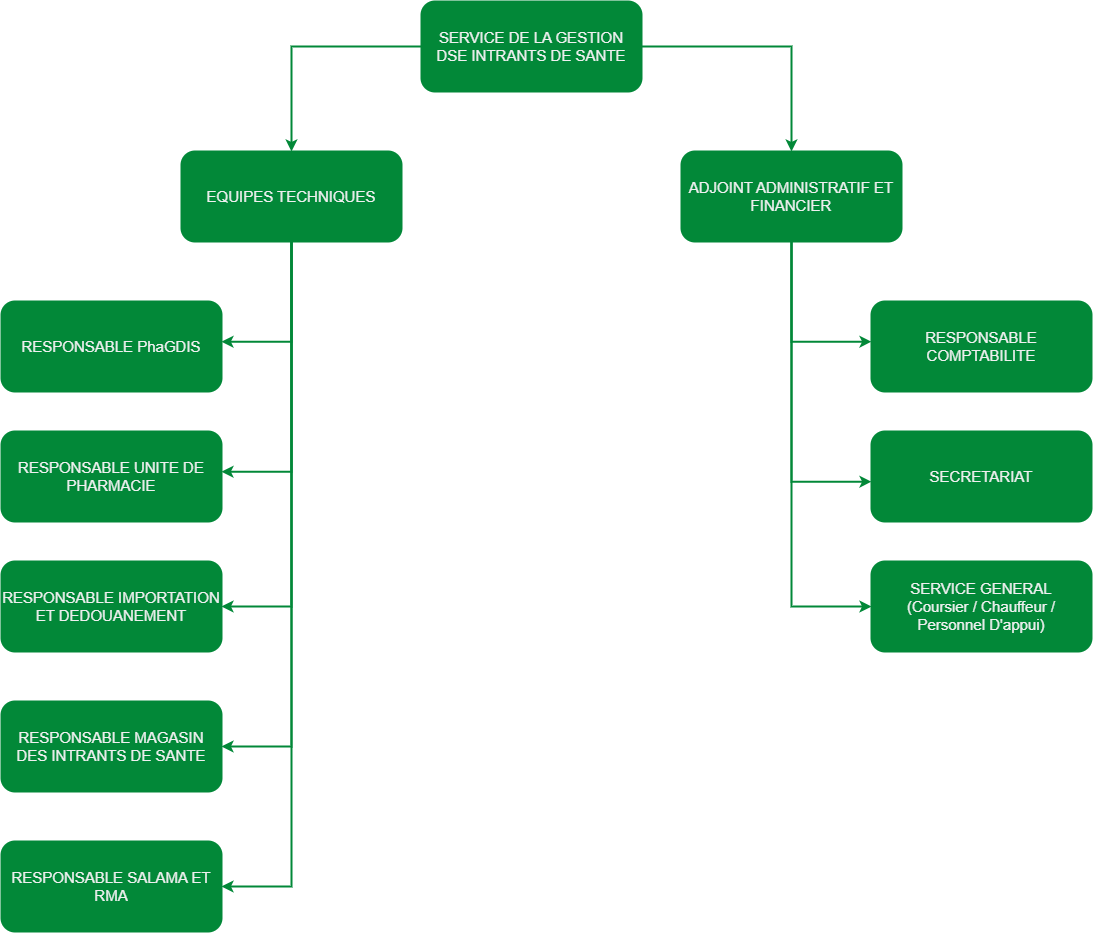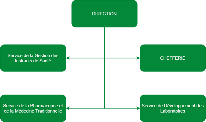 Organigramme de la direction Organigramme de la chefferie Organigramme du service de la gestion des intrants de santé (SGIS) Organigramme du service de développement des laboratoires (SLAB) Organigramme du service de la pharmacopée et de la médecine traditionnelle (SPMT)